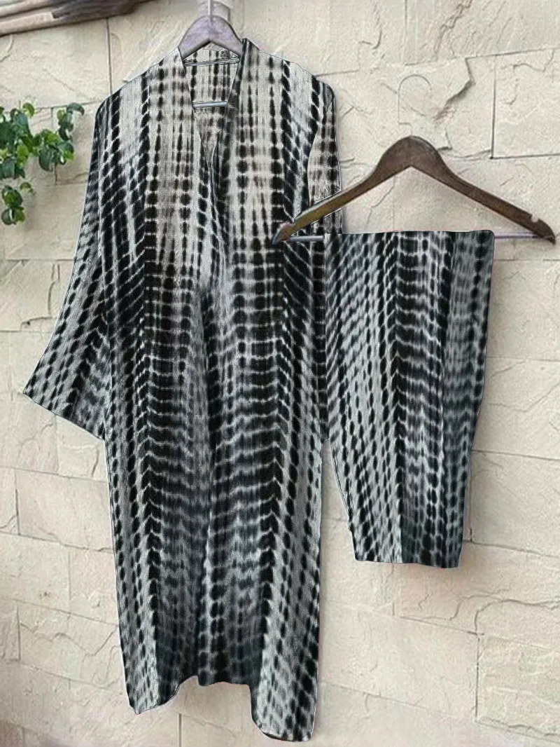 Women's tie dyed cotton and linen pants set, two-piece set 03